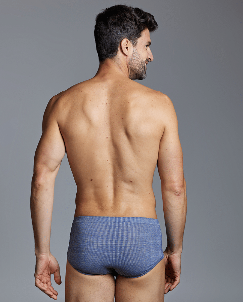 The Grille fly front brief belongs to our new spring-summer collection 2024. It features a print with an atlantic background and white accents. In its more nocturnal version, it comes in mottled gray and deep blue tones. They are like shadows whimsically drawn by light.