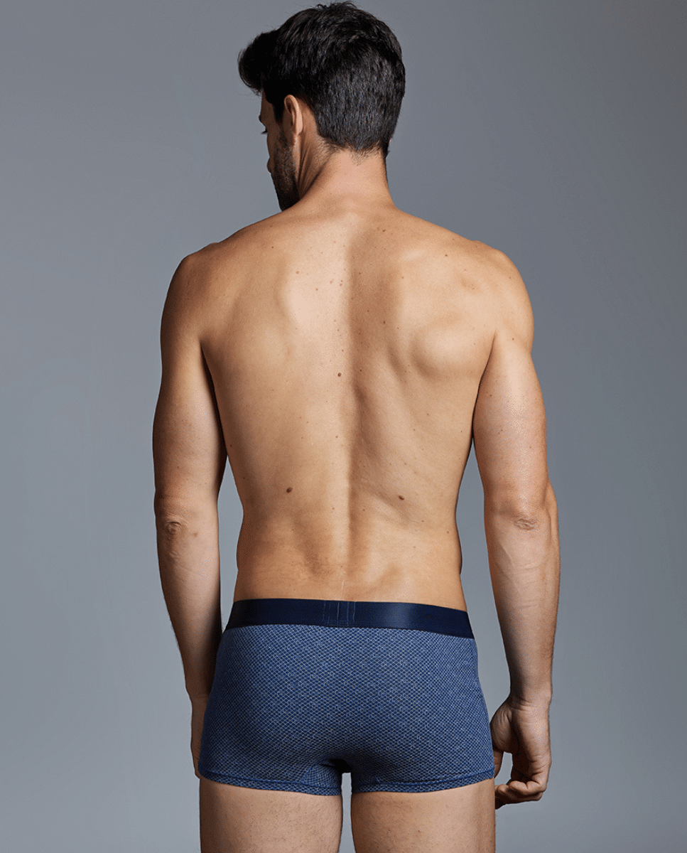 The Arrow atlantic trunk belongs to our new spring-summer collection 2024. The blue-colored print is a serendipity of “geometric accidents,” resembling the shadow cast by a pergola grid or a shutter.