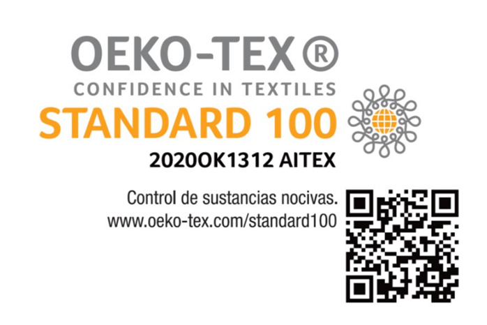 Poseemos la certificación OEKO-TEX®, que verifica los productos fabricados de manera ambiental y socialmente responsable. Además, nuestros proveedores poseen también la etiqueta ecológica que certifica que los productos químicos, auxiliares y colorantes son respetuosos con el medio ambiente.