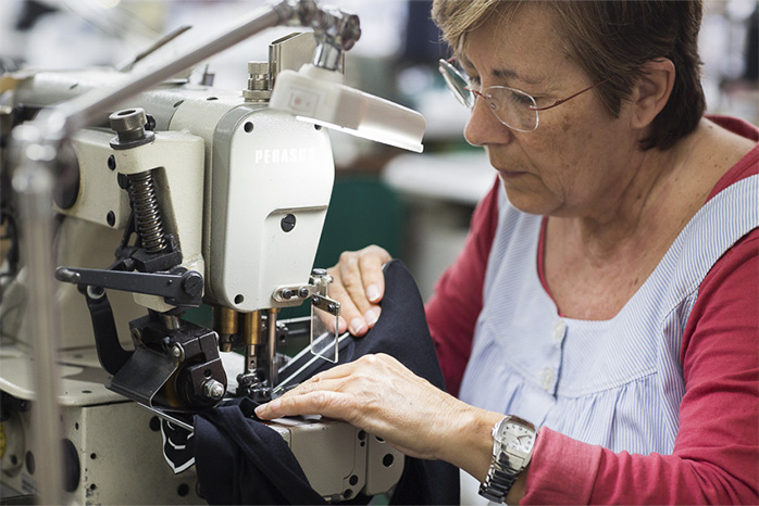 Asimismo, durante los últimos años hemos propiciado la contratación de mujeres mayores de 40 años en riesgo de exclusión social, y colaboramos también con CEO Maresme (parte de la Fundación Maresme), a través de la cual contratamos a personas con discapacidad intelectual de la comarca, en la parte final de nuestro proceso de confección, el conocido “estiramiento” de las prendas.